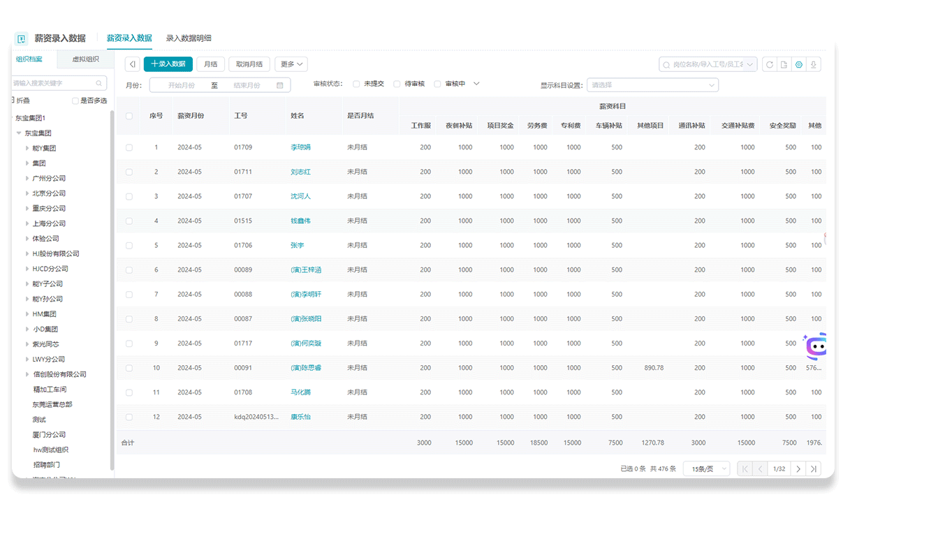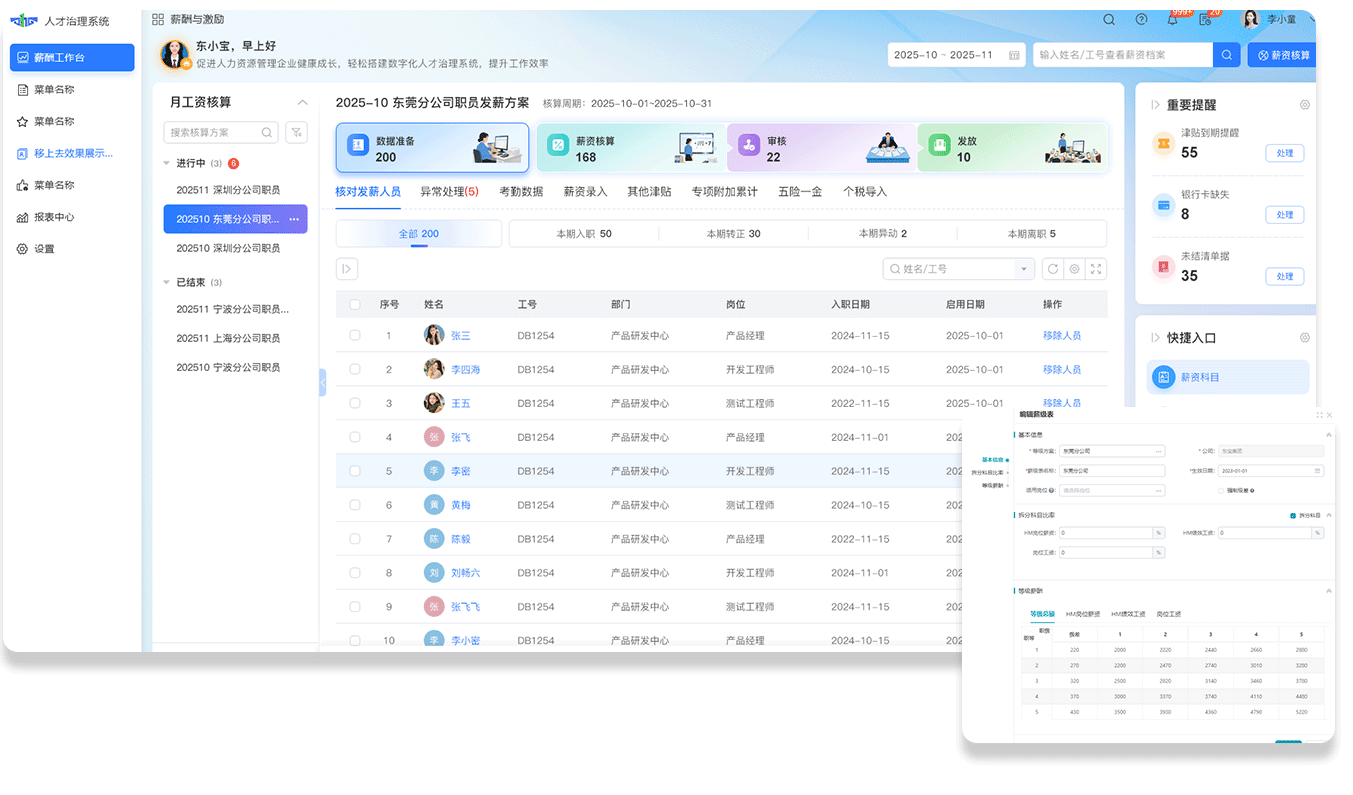 异动数据:自动识别月中入离职、调薪人员并分段计算